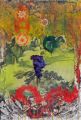 My work is known for its use of varied depictions of natural “scenes”, whether stereotypical landscape views or underwater scenes. The beauty and fragility of life and the tragedy of man’s intervention is my subject. There are few paradises left. As of 2014, I still am using found fabrics from Africa and elsewhere, coupled with mixed paint applications and photo transfers. My use of African prints has added to my vocabulary of forms and patterns. Often their prints use symbolic depictions of natural forms and were recognized by me as similar to my own abstracted natural forms and backgrounds. The manufactured prints add an exotic and surprising aspect to the work. This allows for greater variety and originality in the paintings and an added layer of content that is more specific and somewhat representational. I like the feeling of “craft” that results. The content and meaning of my work has become clearer to the viewer. I am interested in the wildly varied combination of found imagery and depictions of subject that this method has afforded me. From the inspiration of ancient Asian prints, to the contemporary printed motifs inspired by African fabrics, is quite a journey. Ironically, the hand painting has mostly disappeared. Collaged materials and photo imagery has opened a whole new world for me.